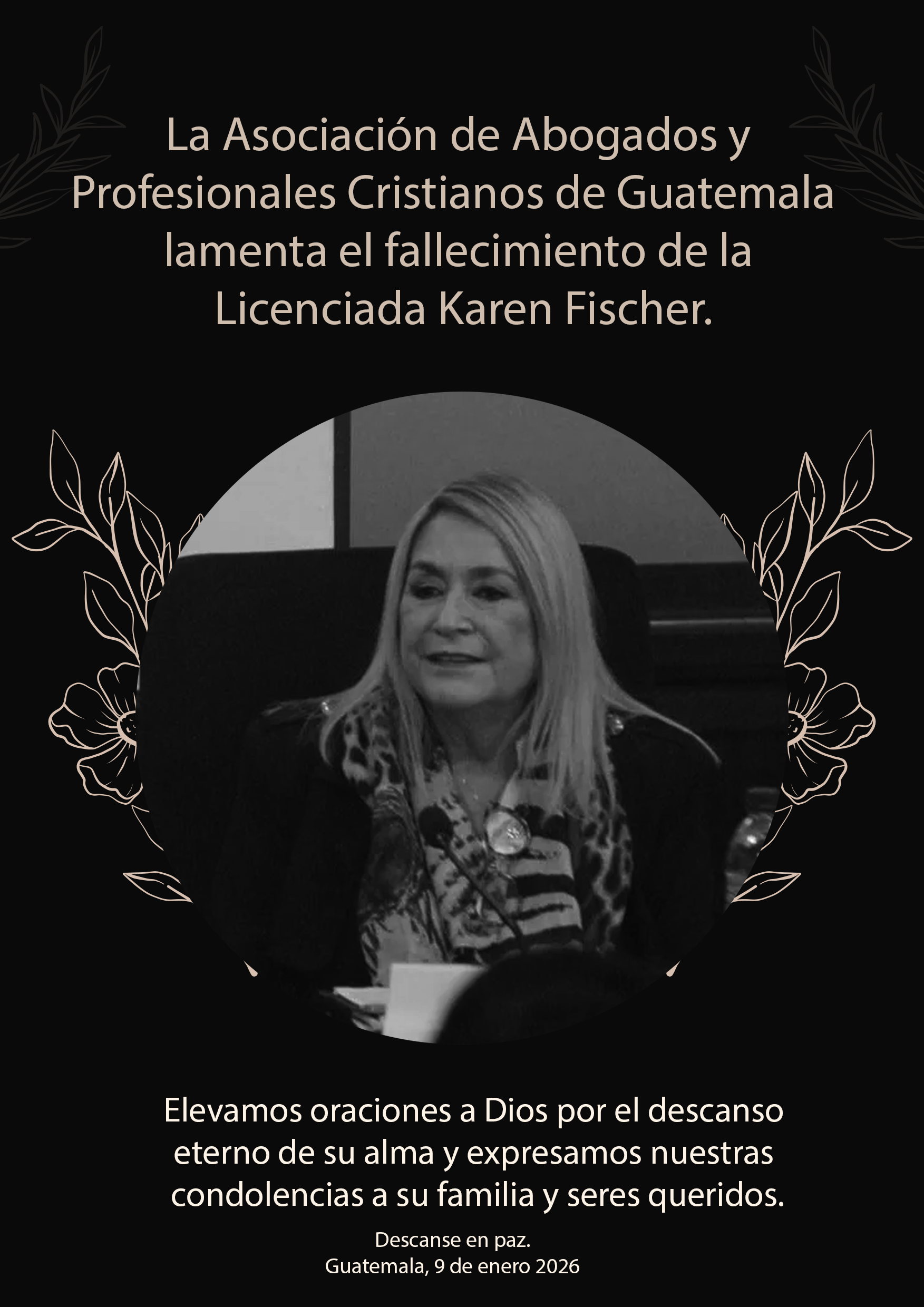 La Asociación de Abogados y Profesionales Cristianos de Guatemala reitera su más sentido pésame y se une solidariamente al dolor que embarga a todos quienes hoy lamentan su partida.